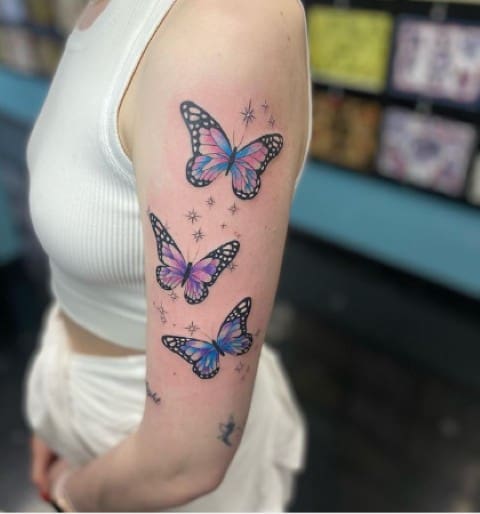 My specialty? Neo-traditional designs that use enough bright colors to make a rainbow jealous, and botanical elements so lush you might expect them to sprout. On top of that, I’ve got a knack for fine line tattoos—because who doesn’t want a tiny, precise piece of art that looks like it was drawn with a really steady hand?